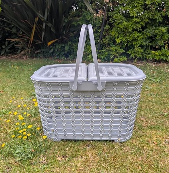 Large Plastic Picnic Basket Lid Handles Camping Travel Food Hamper Organiser